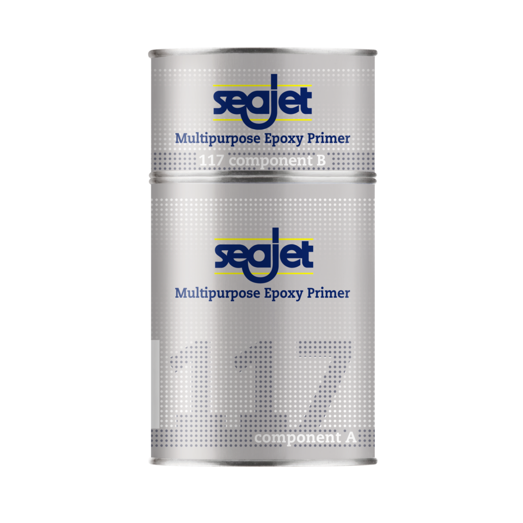 Seajet 117 Multipurpose Epoxy Primer is a two component primer, durable and protects your boat against osmosis with 4 roller coats. Suitable in combination with antifouling and two-component topcoats. An ideal first coat for GRP. Available in silver grey (recommended for below water) and off-white (recommended for above water).