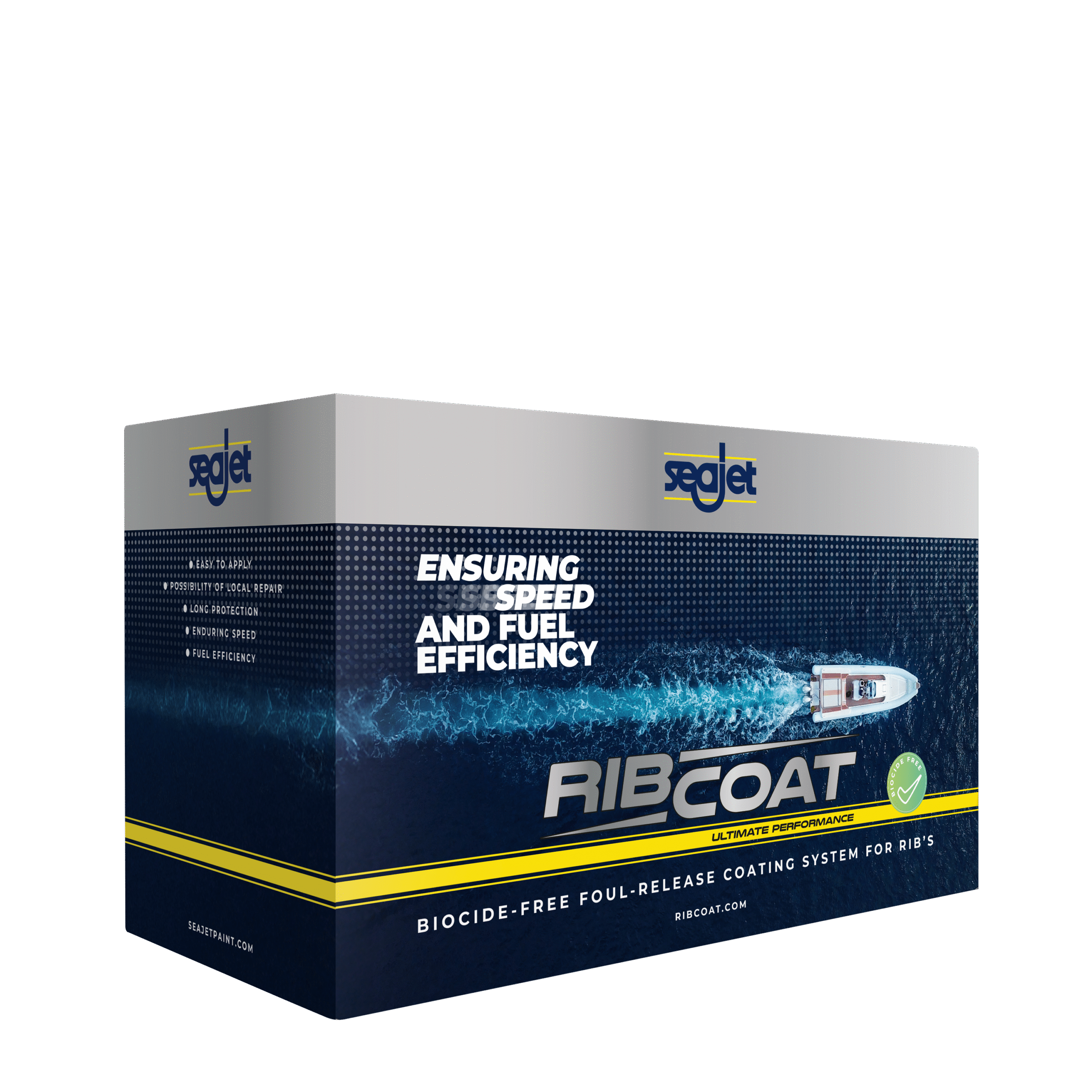 Seajet RIBCOAT – a one-pack, silicone-elastomer foul-release coating that provides a superslick, non-stick surface. Marine growth may settle lightly but rinses away with water movement or a quick sponge wash. Over-coat window 6–8 h; launch in 8 h at 20 °C.